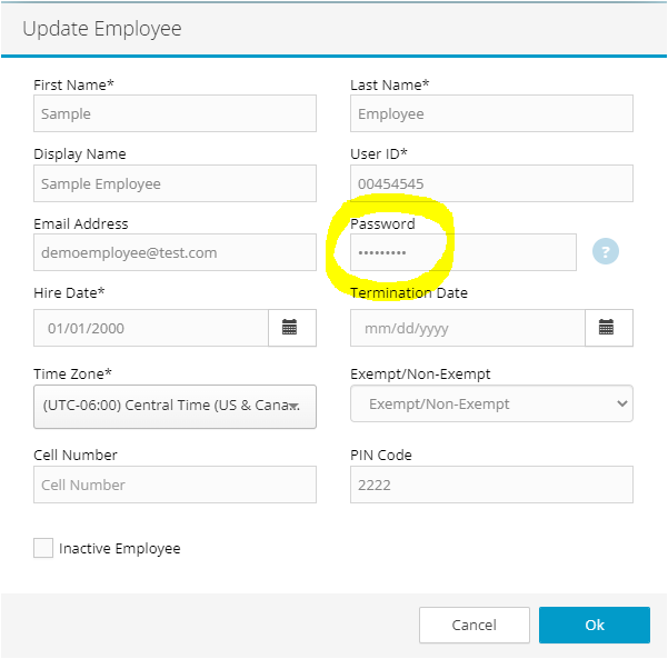 Option 2 Update Password on Employee Profile page (by Admin User)